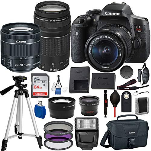- BUNDLE INCLUDES: EOS Rebel T7i Camera | Canon EF 75-300mm F4-5.6 III Telephoto Zoom Lens | Canon Shoulder Bag | 2x Sandisk Ultra SDHC 32GB UHS Class 10 Memory Card | 58mm 4pc HD Macro Close-UP Lens Filter Set +1 +2 +4 +10 | 58" Pro/Video Tripod | Wired Shutter Release Remote | 2 x 1140MAH Battery & Charger Kit | Corel Paintshop Pro X9 Digital Download | 58mm UV, Polarizer & FLD Deluxe Filter Kit | LCD/Lens Cleaning Pen | Dust Remover | 58mm Wide Angle and Telephoto Lenses