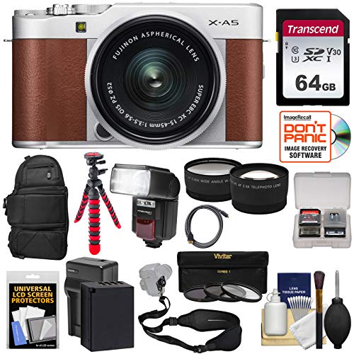 - [1] Fujifilm X-A5 Wi-Fi Digital Camera & 15-45mm XC Lens (Brown) + [2] Fujifilm 100D Sling Case + [3] Transcend 64GB SDXC U3 Card +