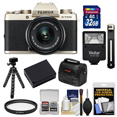 - [1] Fujifilm X-T100 Digital Camera & 15-45mm XC OIS PZ Lens (Champagne Gold) + [2] Transcend 32GB SDHC 300x Card +
