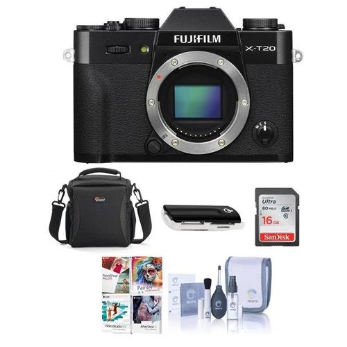 - Fujifilm X-T20 24.3MP Mirrorless Digital Camera (Body Only) - NP-W126S Lithium-Ion Battery - BC-W126 Battery Charger - Body Cap - Shoulder Strap - Metal Strap Clip - Protective Cover - Clip Attaching Tool - Owner's Manual - Fujifilm 1 Year Limited Warranty - Camera Case - 16GB SDHC Card - Cleaning Kit - Card Reader - Software Package