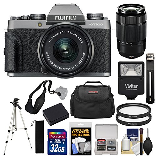 - [1] Fujifilm X-T100 Digital Camera & 15-45mm XC OIS PZ Lens (Dark Silver) + [2] Fujifilm 50-230mm XC II Lens + [3] Transcend 32GB SDHC 300x Card +