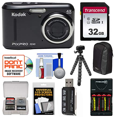 - [1] KODAK PIXPRO Friendly Zoom FZ43 Digital Camera (Black) + [2] Transcend 32GB SDHC Card +
