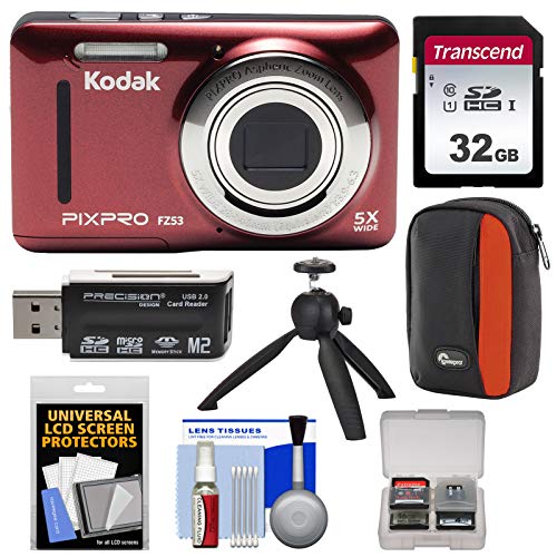 - [1] KODAK PIXPRO Friendly Zoom FZ53 Digital Camera (Red) + [2] Transcend 32GB SDHC Card +