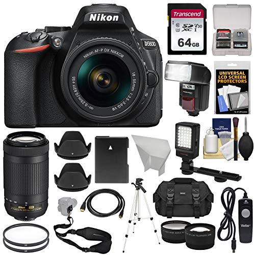 - [1] Nikon D5600 Wi-Fi Digital SLR Camera with 18-55mm VR & 70-300mm DX AF-P Lenses + [2] Vivitar DC-79 Camera Case + [3] Transcend 64GB SDXC U3 Card + [4] Spare EN-EL14a Battery +