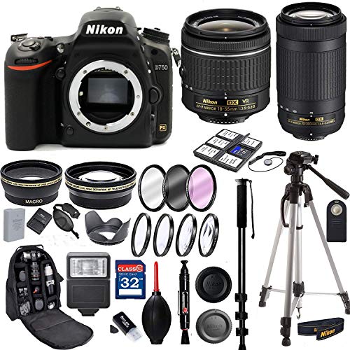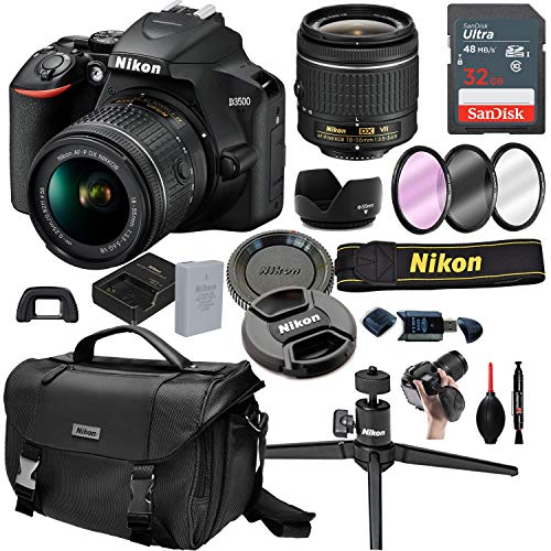 - DSLR Camera w/AF-P DX NIKKOR 70-300mm f/4.5-6.3G ED Lens and AF-P DX NIKKOR 18-55mm f/3.5-5.6G VR Lens + 32 GB Memory Card and Professional Accessory Bundle