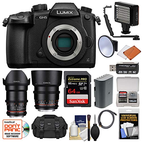- [1] Panasonic Lumix DC-GH5 Wi-Fi 4K Digital Camera Body + [2] Rokinon 35mm T1.5 Cine DS Lens + [3] Rokinon 85mm T/1.5 Cine Lens +