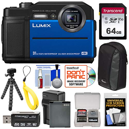- [1] Panasonic Lumix DC-TS7 4K Tough Shock & Waterproof Digital Camera (Blue) + [2] Transcend 64GB SDXC U3 Card + [3] Spare DMW-BCM13E Battery +