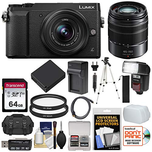 - [1] Panasonic Lumix DMC-GX85 4K Wi-Fi Digital Camera & 12-32mm & 45-150mm Lens (Black) + [2] Transcend 64GB SDXC U3 Card + [3] Spare DMW-BLG10E Battery + [4] Battery Charger +