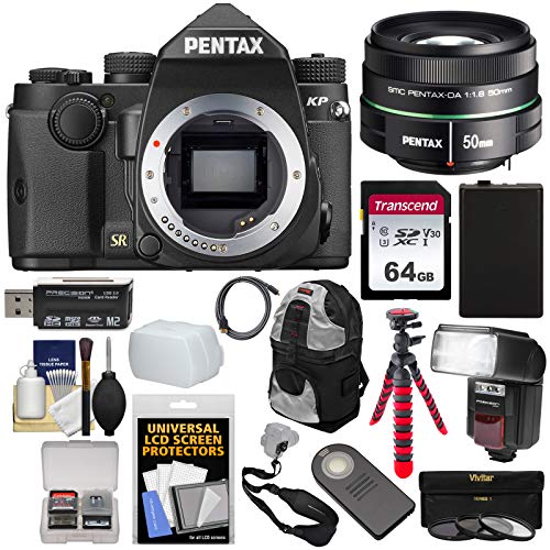 - [1] Pentax KP Wi-Fi Digital SLR Camera Body (Black) + [2] Pentax DA 50mm f/1.8 SMC Lens + [3] Transcend 64GB SDXC U3 Card + [4] Spare D-LI109 Battery +