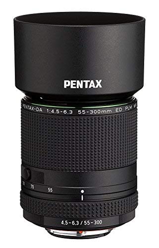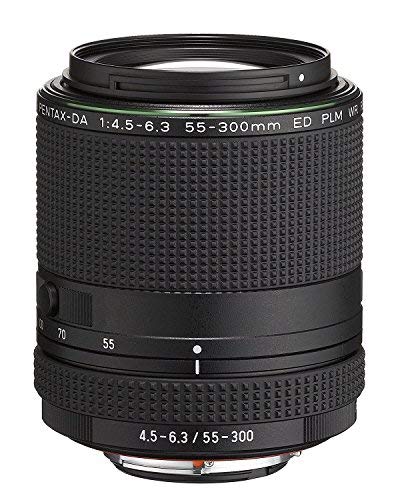- HD PENTAX-DA 55-300mm f/4.5-6.3 ED PLM WR RE LENS: Short minimum focusing distance of 095m PENTAX's first K-mount with electromagnetic diaphragm control system for a quiet sound operation during movie recording Diaphragm blades: 9.Rear focus system and PLM (pulse motor), direct drive lead screw system for quite zoom a High-speed AF Compact telephoto zoom lens thanks to its collapsible structure Weather-resistant construction ED lens elements for brilliant sharpness and saturated colors