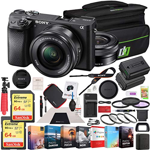 - BUNDLE INCLUDES: 2x SanDisk Extreme SDXC 64GB Memory Cards | Deco Gear 40.5mm 4pc HD Macro Filter Set | Deco Gear 40.5mm 3pc Filter Kit | Replacement Battery for NP-FW50 | Rapid Battery Charger | Deco Gear Camera Bag | Deco Photo Cleaning Kit w/ Case | Dust Blower | Lens Pen | Microfiber Cloth | LCD Screen Protectors | Card Reader | 12" Tripod | Editing Suite: OfficeSuite Premium, Photo Noir, Video Suite, Slideshow Maker, Photo Editor 5, Photo Focus, piZap Pro, Ribbet Premium, Photo DeNoise